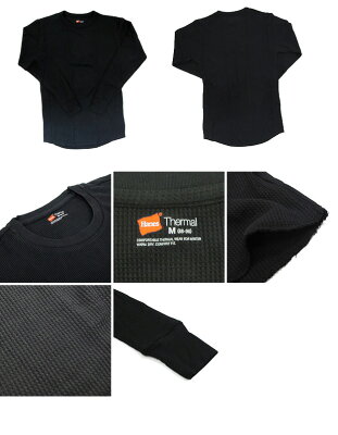 ブランド名 HANES / ヘインズ 商品名 THERMAL UNDERWEARサーマル長袖クルーネックTシャツ 商品番号 HM4-G501HM4-Q501 素材 コットン60% / ポリエステル40%コットン65% / ポリエステル35%※カラーによって素材の比率が異なります。