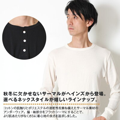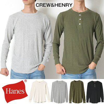 【 10%OFF SALE セール 】 Hanes ヘインズ THERMAL ワッフル サーマル クルーネック ヘンリーネック ロングスリーブ Tシャツ リブ 定番 秋冬 [Lot/HM4-G501,HM4-G503] デイリーウェア アンダーウェア コットン 無地 ヴィンテージ シンプル 保温 インナー 米軍